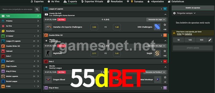 O 55dbet oferece uma grande seleção de opções de apostas em e-sports com probabilidades competitivas